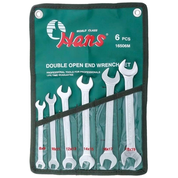 Набор двухсторонних гаечных ключей рожкового типа Hans предназначен для проведения монтажно-демонтажных работ с резьбовыми соединениями при ремонте и обслуживании авто-, мото- и другой техники, различного оборудования, конструкций и т.д.
