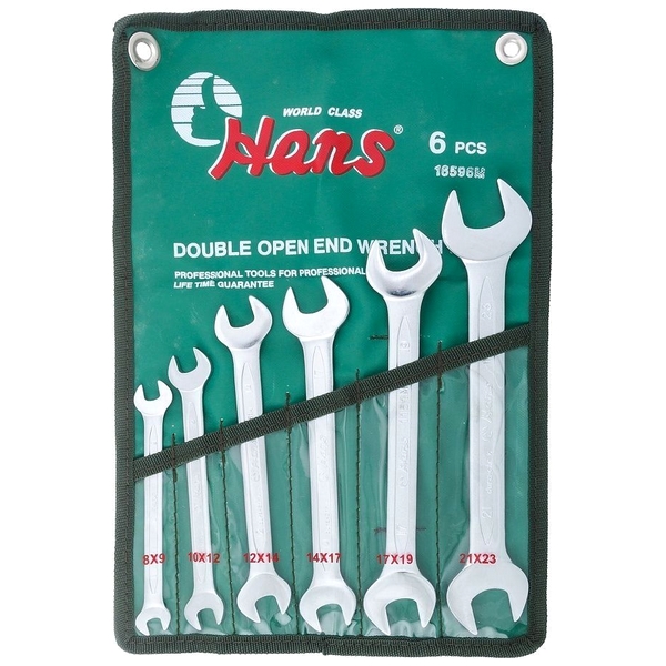 Набор двухсторонних гаечных ключей рожкового типа Hans предназначен для проведения монтажно-демонтажных работ с резьбовыми соединениями при ремонте и обслуживании авто-, мото- и другой техники, различного оборудования, конструкций и т.д.