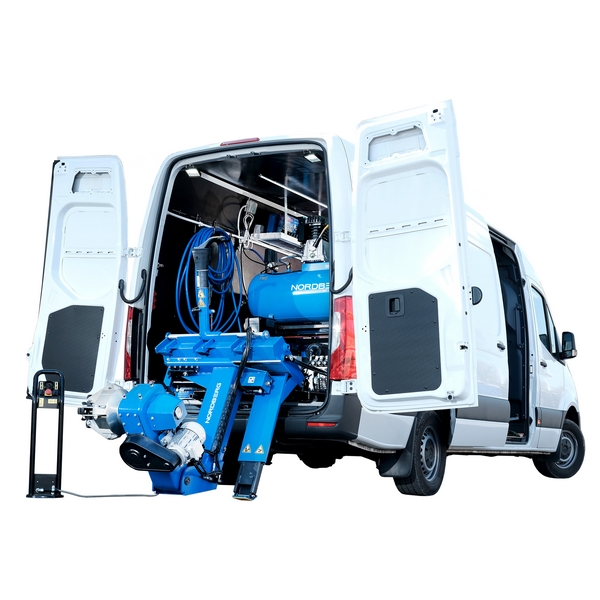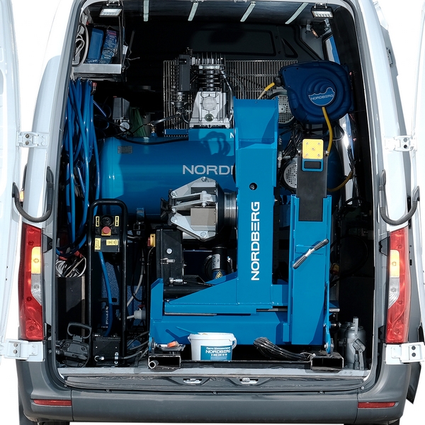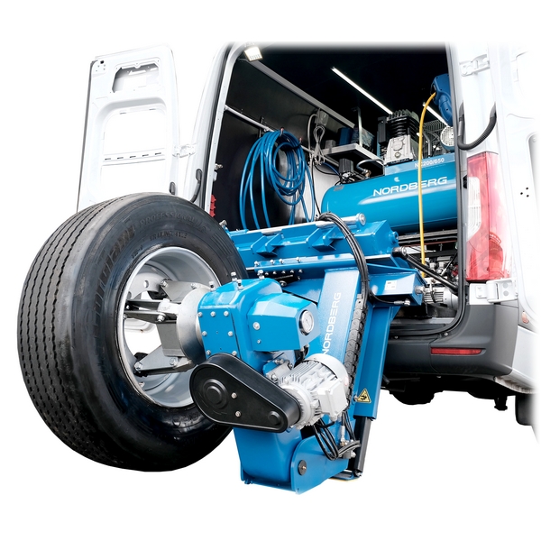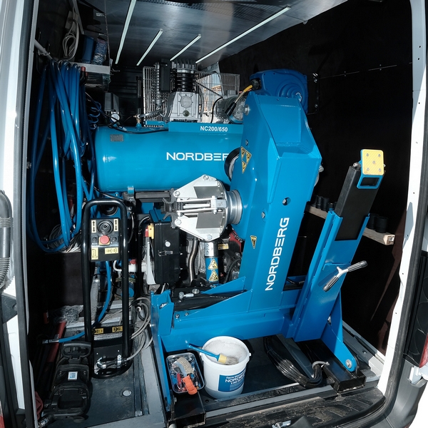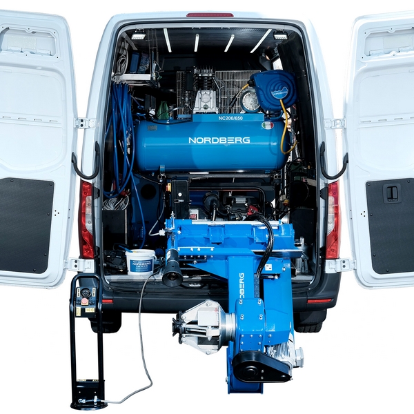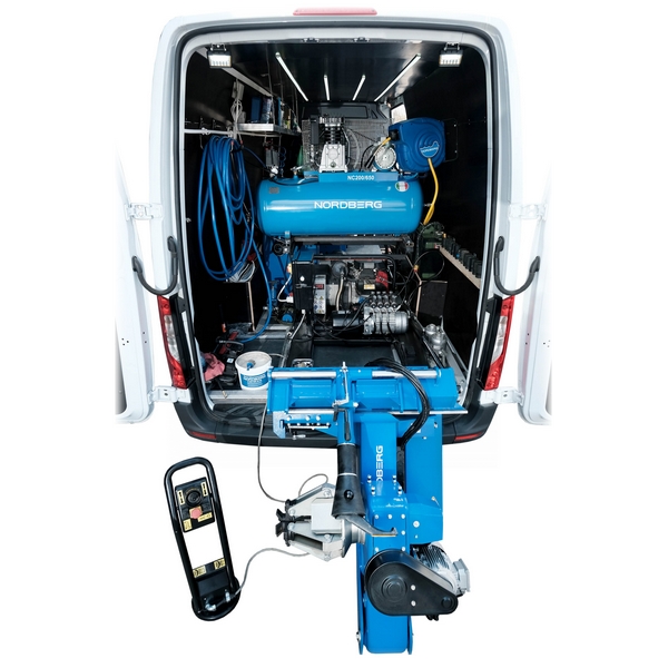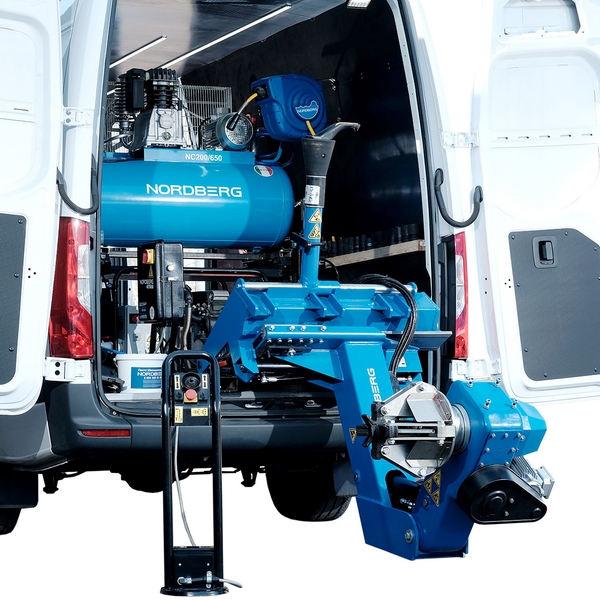 Устанавливаемый в фургоны или малотоннажные грузовые автомобили шиномонтажный станок Nordberg предназначен для выездного обслуживания колес грузовых автомобилей, автобусов, сельскохозяйственной, строительной и другой техники с диаметром обода 13"-26" и массой до 700 кг.