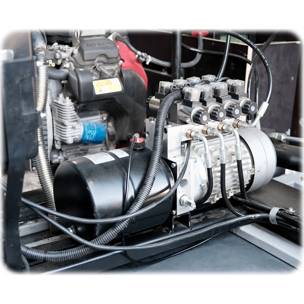 - станок оборудован ручным насосом для перемещения станка внутрь фургона в случае отключение электропитания;