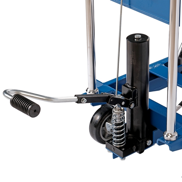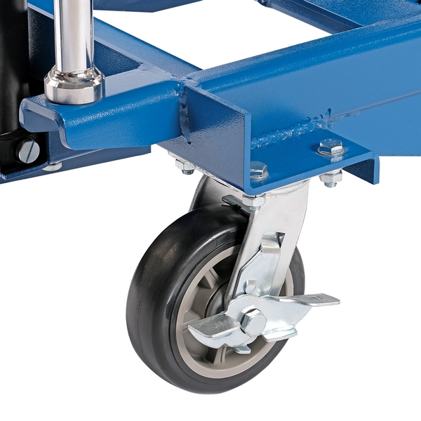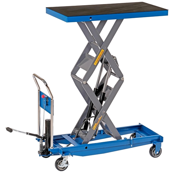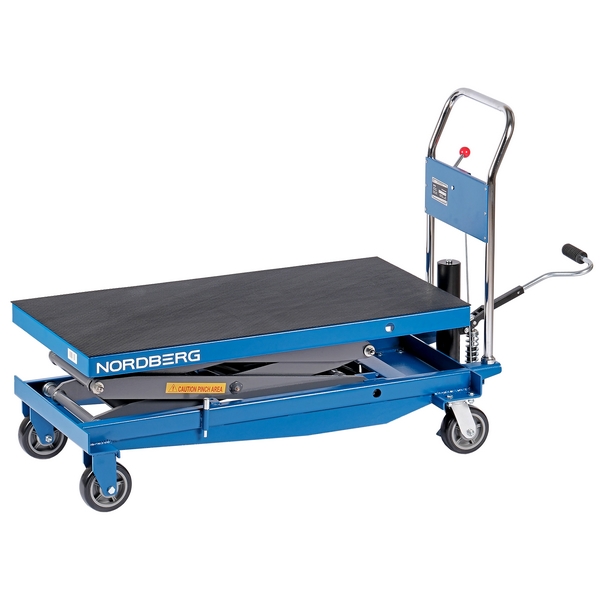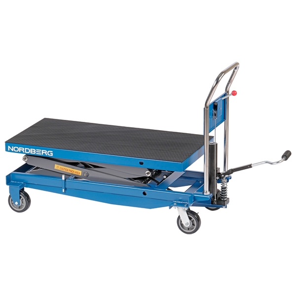 Гидравлический подъемный стол-тележка Nordberg повышенной грузоподъемностью 1000 кг совмещает в себе функции стационарного подъемного стола для приподнимания различных грузов и ручной платформенной тележки для их перемещения по территории производственного цеха, авторемонтного предприятия, складского и других помещений.