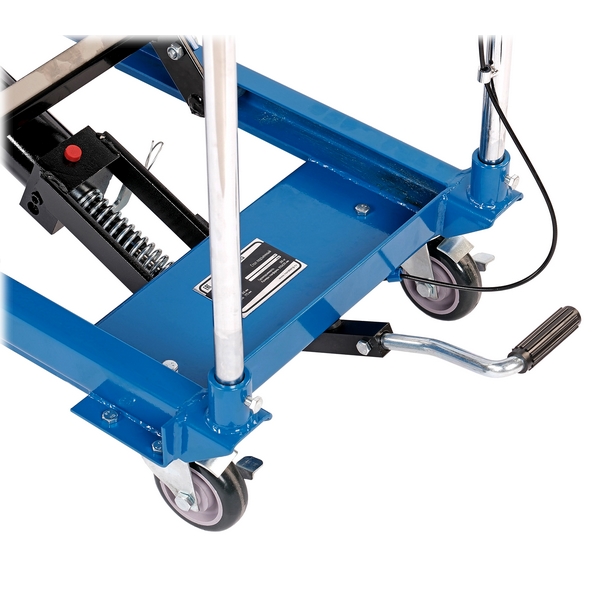 - подъемный стол изготовлен из стали высокого качества и имеет надежный гидравлический узел с ножным приводом;