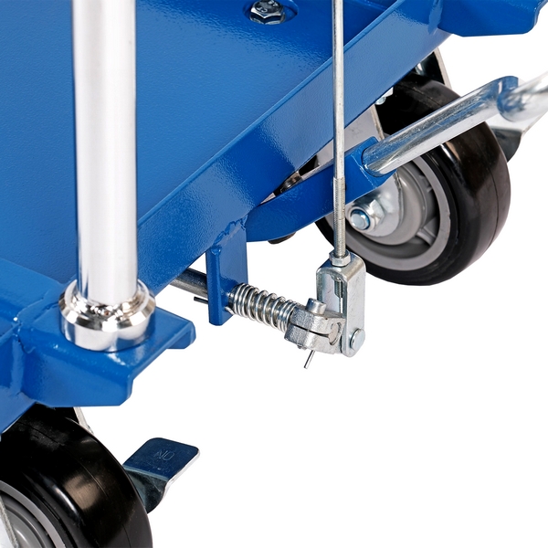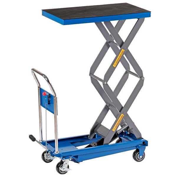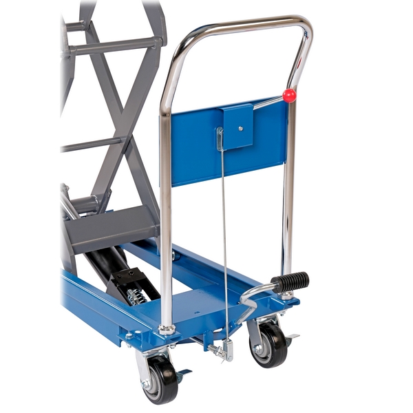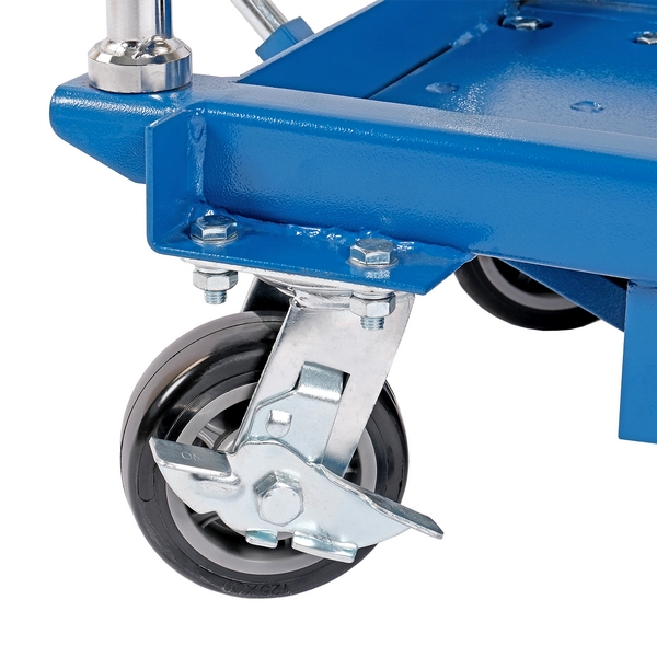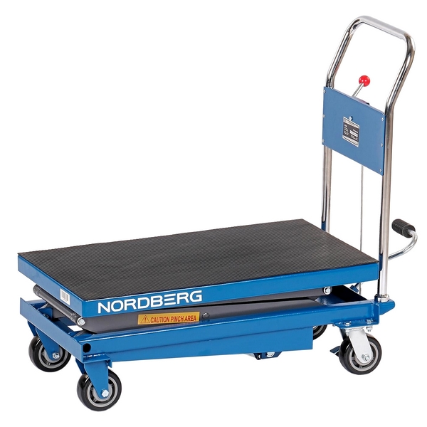 Гидравлический подъемный стол-тележка Nordberg грузоподъемностью 500 кг совмещает в себе функции стационарного подъемного стола для приподнимания различных грузов и ручной платформенной тележки для их перемещения по территории производственного цеха, авторемонтного предприятия, складского и других помещений.
