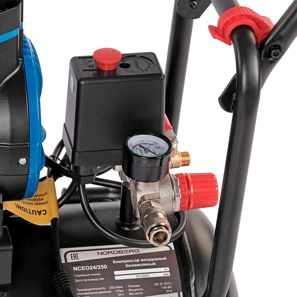 - ресивер объемом 24 л изготовлен из стали и имеет антикоррозийное покрытие;