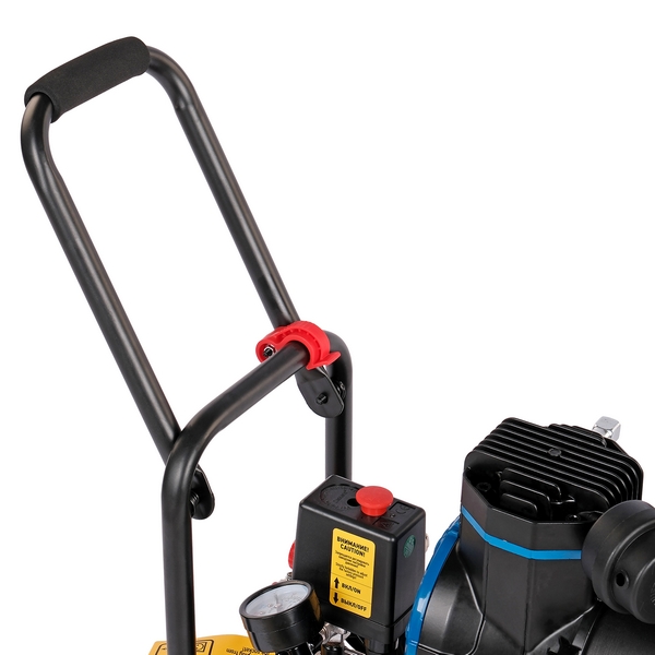 - небольшие размеры, колеса и складная ручка облегчают перемещение компрессора;