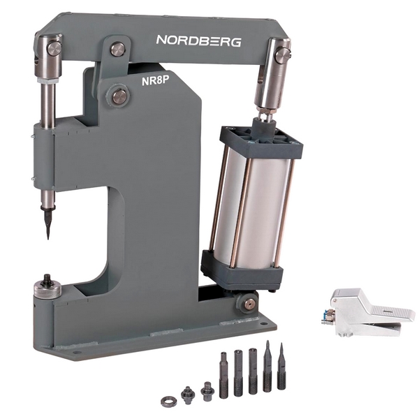 Настольный пневматический станок Nordberg предназначен для установки и удаления стальных, алюминиевых и медных заклепок диаметром до 10 мм при замене накладок на тормозных колодках и дисках сцепления. Применяется в автосервисах, автомастерских, на СТО и т.д.