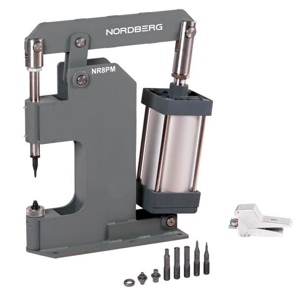Настольный пневматический станок Nordberg предназначен для установки и удаления стальных, алюминиевых и медных заклепок диаметром до 12 мм при замене накладок на тормозных колодках и дисках сцепления. Применяется в автосервисах, автомастерских, на СТО и т.д.