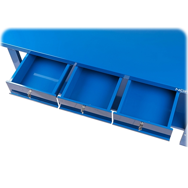 - имеются 3 выдвижных ящика с замками и нагрузкой по 50 кг на каждый для хранения инструментов;