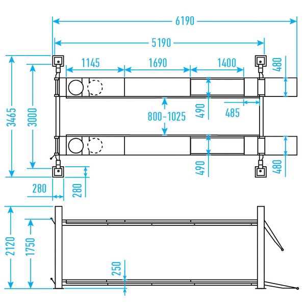 Подъемник изготовлен из материалов и комплектующих высокого качества, имеет крепкую и надежную конструкцию. Увеличенная грузоподъемность, регулируемое расстояние между платформами (800-1025 мм) и широкое расстояние между стойками позволяют обслуживать не только легковой транспорт, но и более крупные автомобили – внедорожники, минивэны, малотоннажные коммерческие машины.