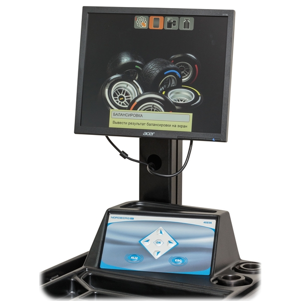 Стенд производит автоматическое измерение нескольких параметров: дистанции, диаметра и ширины диска. Оснащен 17-дюймовым монитором высокой четкости, на который выводятся данные по процессу балансировки с наглядной 3D-визуализацией. Станок отличается высоким качеством изготовления, надежностью, простым и логически понятным управлением.