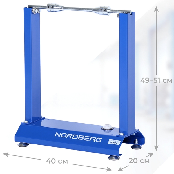 Специальный стенд Nordberg предназначен для упрощенной и быстрой статической балансировки колес мотоциклов и велосипедов диаметром до 740 мм и шириной до 320 мм. Применяется в мотомастерских и самими владельцами техники.