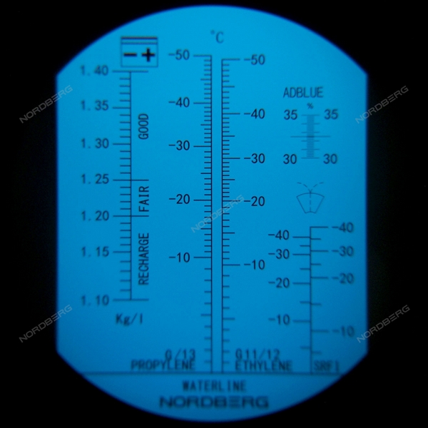 Рефрактометр Nordberg представляет собой портативный диагностический прибор для измерения показателя преломления (рефракции) жидкостей, используемых в транспортных средствах, таких как омывающие и охлаждающие жидкости, аккумуляторные электролиты и AdBlue, что позволяет определить их концентрацию и качество (плотность, температура замерзания, процентное содержание мочевины в AdBlue).