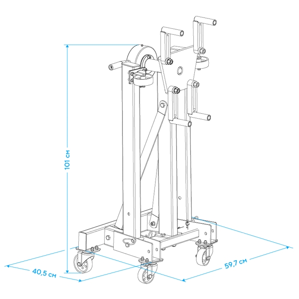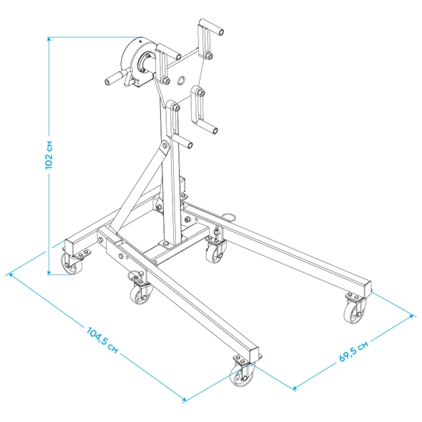 - 6 колес обеспечивают маневренность по территории цеха, а тормоза позволяют зафиксировать стенд на одном месте.