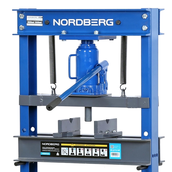 Пресс Nordberg, у которого силовым устройством выступает бутылочный гидравлический домкрат с максимальным усилием 12 тонн и ручным управлением, предназначен для проведения работ под давлением с металлическими деталями и заготовками. Сфера применения: небольшие автосервисы, слесарные мастерские, СТО и т.д.