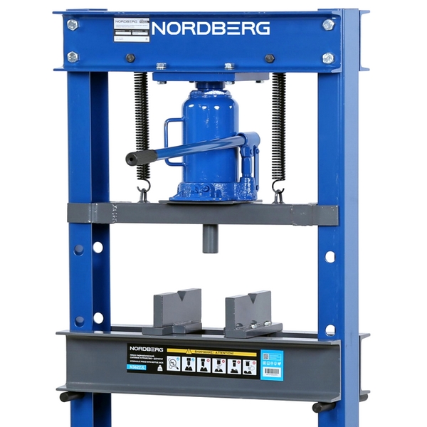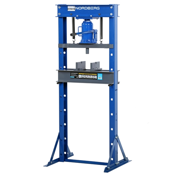 Пресс Nordberg, у которого силовым устройством выступает бутылочный гидравлический домкрат с максимальным усилием 20 тонн и ручным управлением, предназначен для проведения работ под давлением с металлическими деталями и заготовками. Сфера применения: небольшие автосервисы, слесарные мастерские, СТО и т.д.