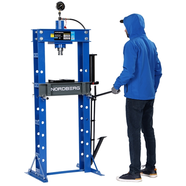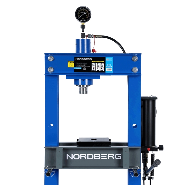 Гидравлический пресс напольного размещения Nordberg, развивающий усилие до 30 тонн, применяется для выпрессовки деталей, правки, вытяжки заготовок и других операций. Применяется в автосервисах, на производственных, промышленных, ремонтно-восстановительных и иных предприятиях.