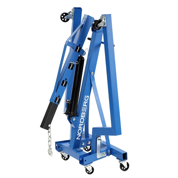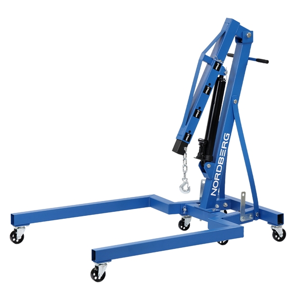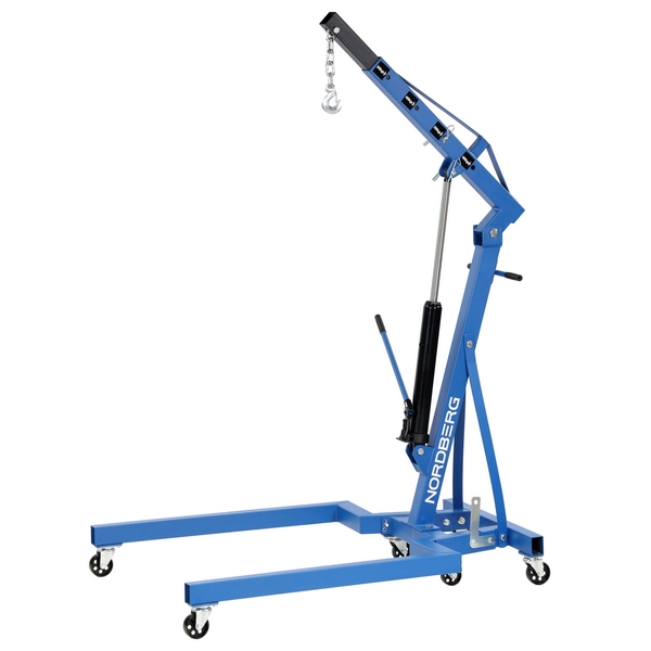 Гидравлический кран Nordberg, максимальная грузоподъемность которого составляет 680 кг, предназначен для подъема/опускания и перемещения автомобильных узлов, агрегатов и других грузов. Применяется в автосервисах, автомастерских, на СТО, складах и т.д.
