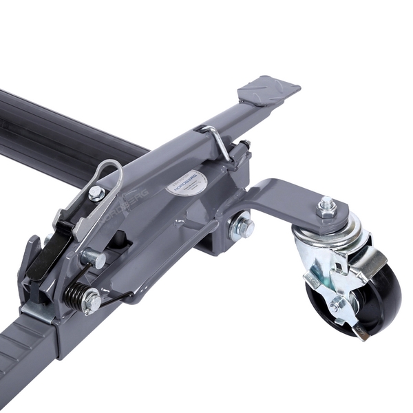 Специализированная тележка с механическим приводом Nordberg предназначена для подъема за колесо на небольшую высоту и ручного перемещения неисправного автомобиля по территории автосервиса, мастерской, цеха кузовного ремонта, зоны приемки и т.д.