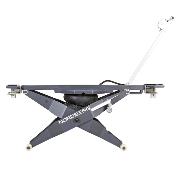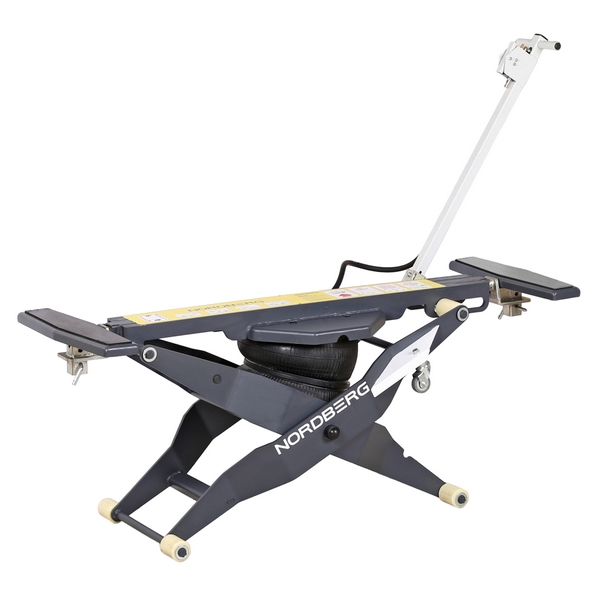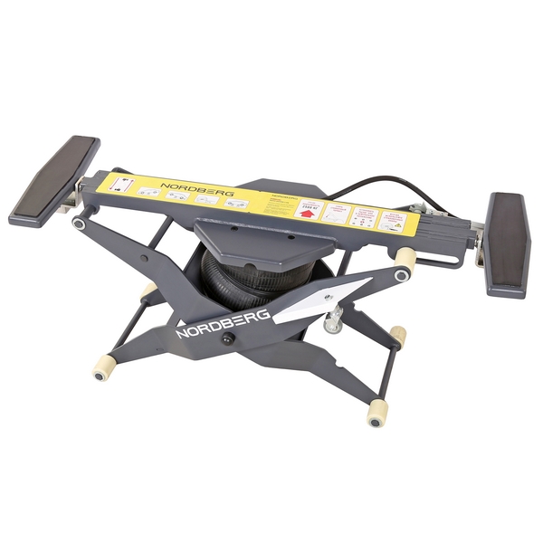 Подкатной пневматический подъемник ножничного типа Nordberg предназначен для вывешивания передней или задней части, а также сбоку легковых автомобилей и другой техники массой до 3 тонн на высоту до 49 см. При использовании двух устройств возможен полноценный подъем автотранспортного средства. Сфера применения: стационарные и мобильные шиномонтажи, детейлинг мастерские, частные гаражи и т.д.