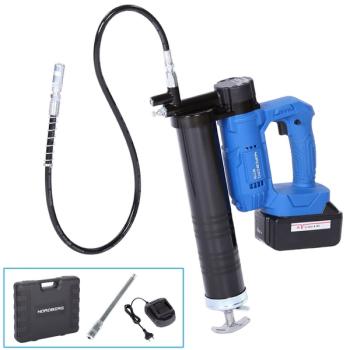 - аккумуляторный привод (батарея 18 В / 4 Ач) не требует ручного накачивания и обеспечивает стабильную подачу смазки;