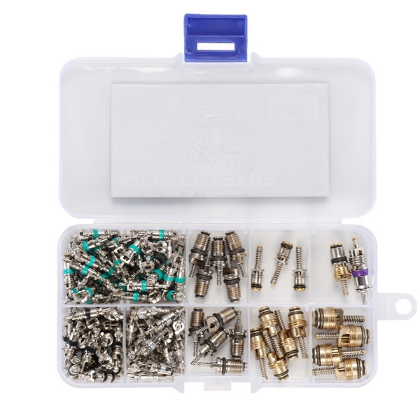 Набор ниппелей (золотников) Nordberg, состоящий из 134 предметов, предназначен для обслуживания систем кондиционирования автомобилей. Применяется в автосервисах, профильных автомастерских, на СТО и т.д.