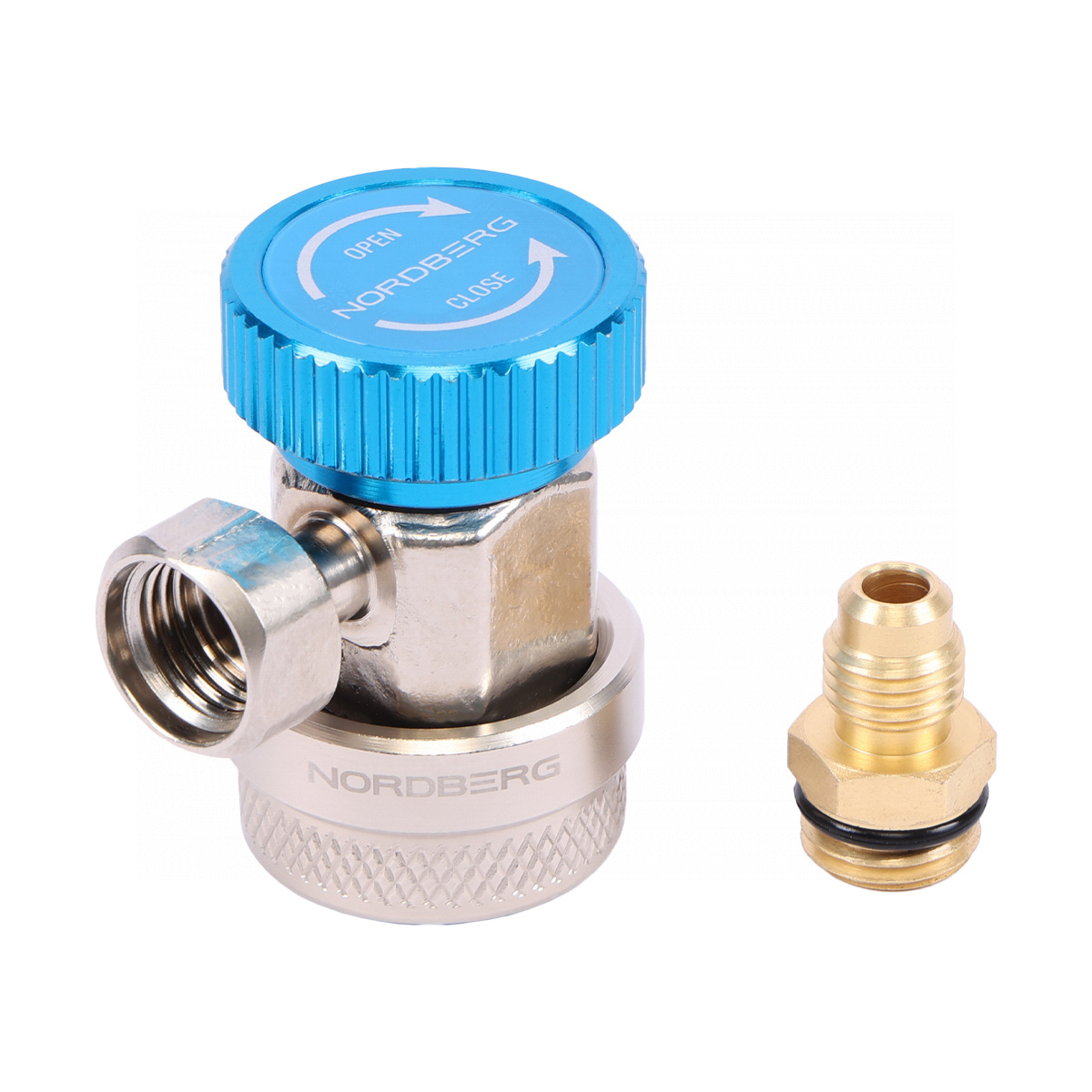 Муфта БРС с вентилем Nordberg предназначена для подсоединения к порту низкого давления автомобильного кондиционера без открытия доступа к системе циркуляции хладагента. Применяется при заправке и обслуживании систем кондиционирования автотранспорта, использующих фреон R134a.