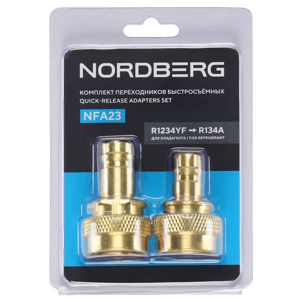 Быстросъемные переходники низкого и высокого давления Nordberg предназначены для подключения системы автокондиционера к сервисному оборудованию в тех случаях, когда требуется совместимость разъемов под разные хладагенты – R1234yf и R134a. Применяются в автосервисах, профильных автомастерских, на СТО и т.д.