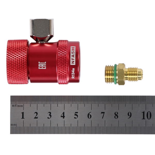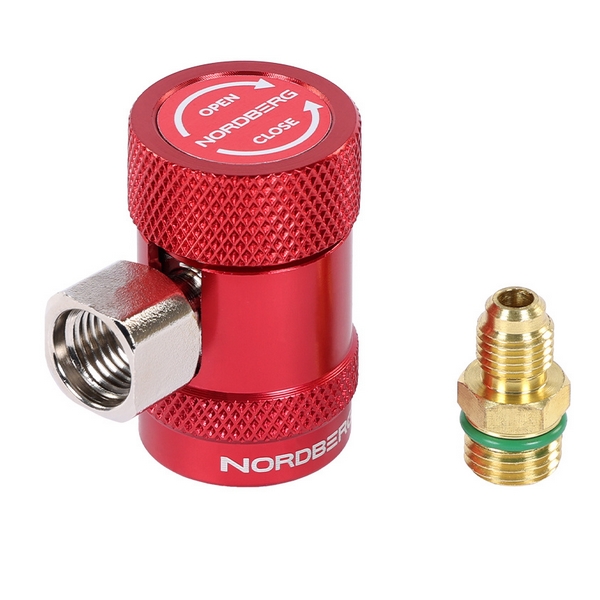Муфта БРС с вентилем Nordberg предназначена для легкого и без повреждений подсоединения к порту высокого давления автомобильного кондиционера без открытия доступа к системе циркуляции хладагента. Применяется при заправке и обслуживании систем кондиционирования автомобилей, использующих фреон R134a.