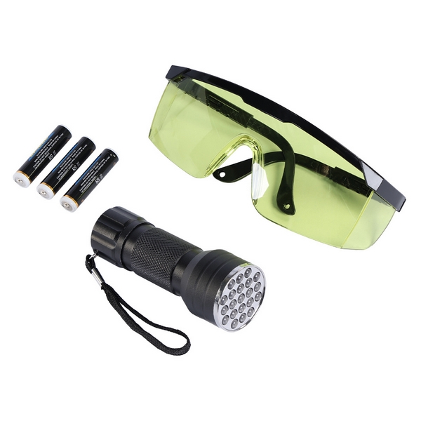 Фонарь имеет компактные размеры для работы в узких местах подкапотного пространства. Длина волны УФ фонаря составляет 395 нм. Тип питания – 3 х AAA. Идущие в комплекте специальные очки защищают глаза мастера от ультрафиолетового света.