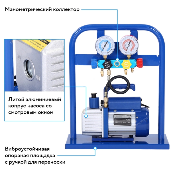Установка Nordberg предназначена для обслуживания (вакуумирования, заправки масла и хладагента) автомобильных и стационарных систем кондиционирования и холодильных установок на хладагентах R134a, R22, R407C и R410A. Применяется в небольших автомастерских, при работах на выезде и т.д.
