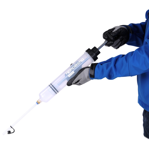 Шприц Nordberg предназначен для заливки и откачки моторных и трансмиссионных масел, а также других технических жидкостей из узлов и агрегатов, топливной, тормозной, гидравлической и систем охлаждения. Применяется при ремонте и обслуживании автомобилей, мотоциклетной, садовой и другой техники, промышленного оборудования и т.д.
