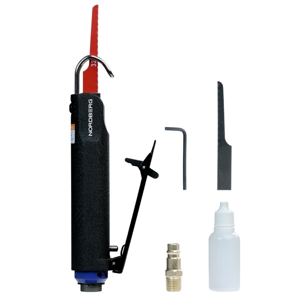 Пневматический лобзик Nordberg предназначен для пропиливания различных твердых материалов толщиной до 2 мм. Применяется в мастерских, на небольших производствах, в автосервисах и т.д.
