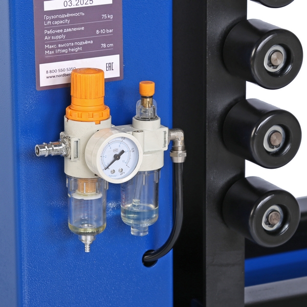 Специализированное устройство с пневматическим приводом Nordberg предназначено для облегчения и ускорения проведения шиномонтажных работ. Производит одновременный подъем и переворот на 90 градусов платформы с находящимся на ней колесом и последующим перемещением его на шиномонтажный стенд и при необходимости обратно.