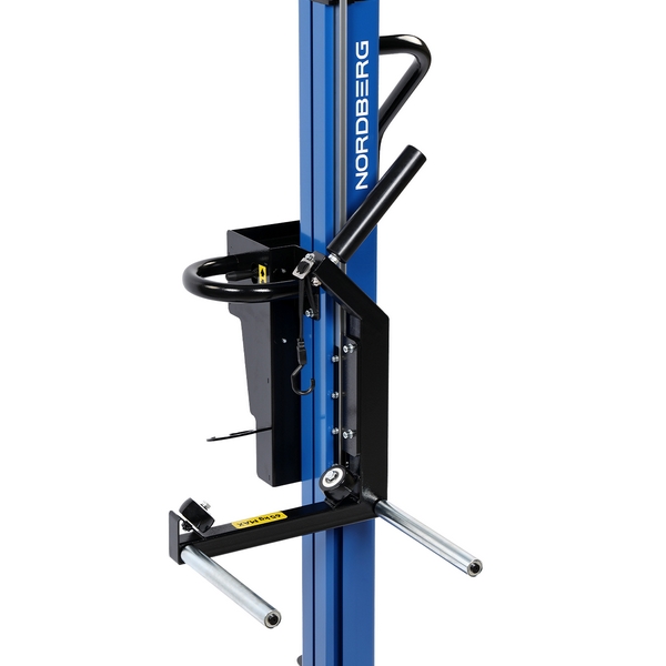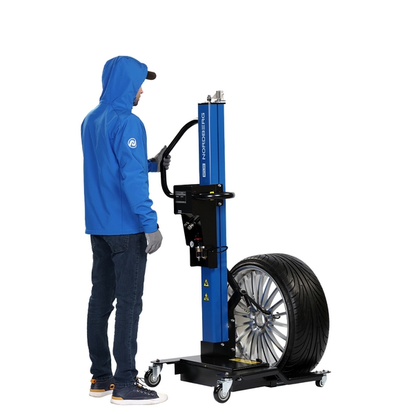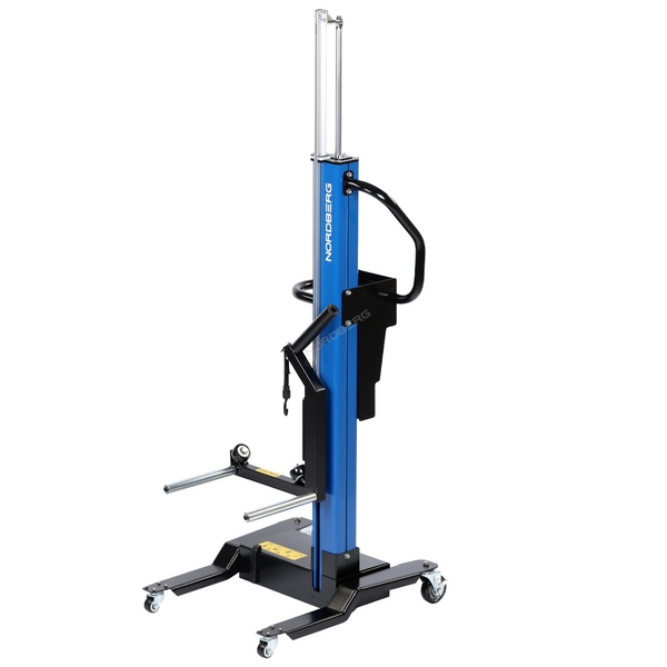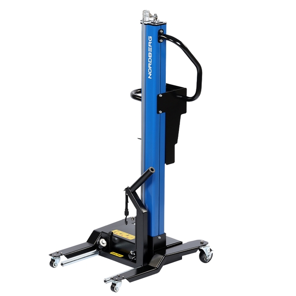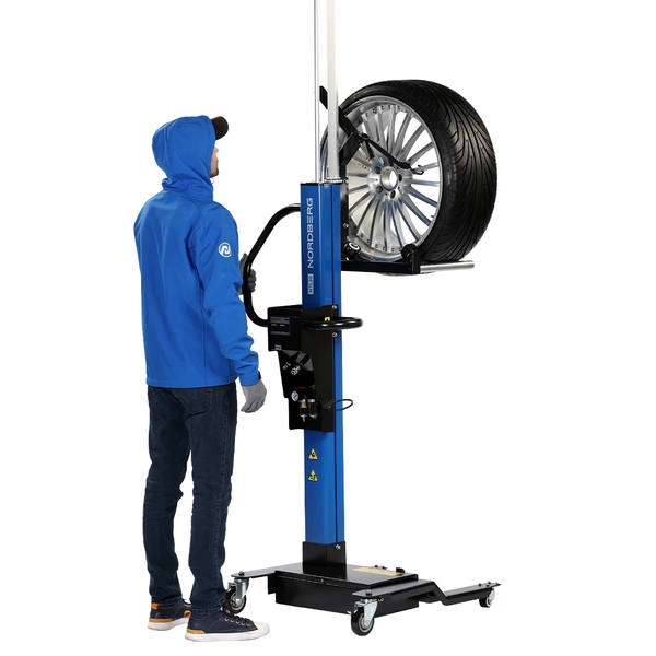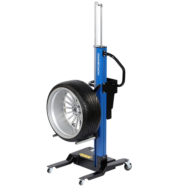 Подкатной специализированный подъемник с пневматическим приводом Nordberg предназначен для облегчения снятия и монтажа колес массой до 65 кг автотранспортных средств, установленных на подъемниках, а также перемещения колес по территории цеха, работы с шиномонтажными и балансировочными станками и т.д. Применяется в автосервисах, автомастерских, на СТО и т.д.