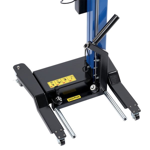 - усиленное широкое основание обеспечивает подъемнику устойчивость, низкий профиль – возможность подкатить под автомобиль с малым дорожным просветом, а поворотные колеса, крупная ручка и легкая алюминиевая стойка – простое перемещение устройства по территории цеха.