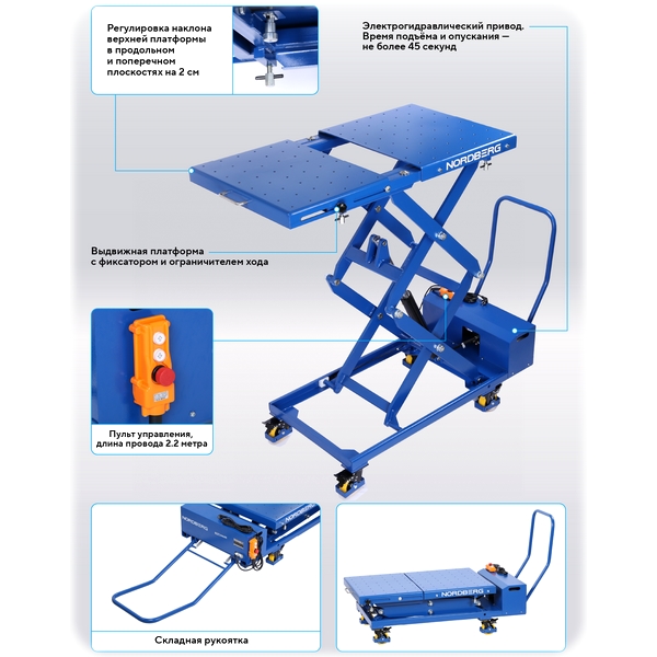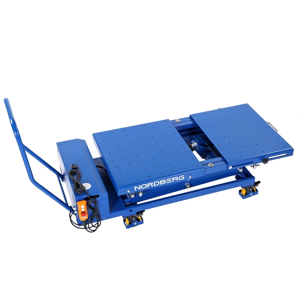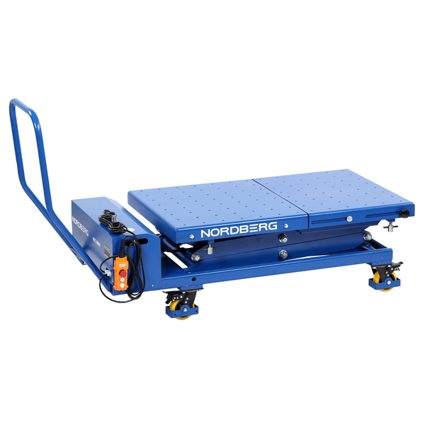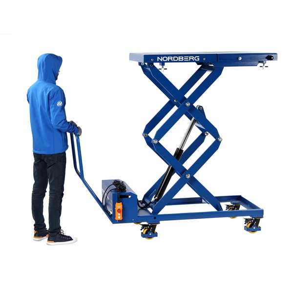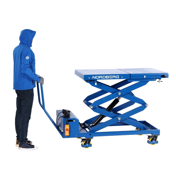 Подъемный стол-тележка Nordberg с электрогидравлическим приводом и грузоподъемностью 1000 кг предназначен для эффективной и безопасной работы с различными аккумуляторными модулями и иными узлами электромобилей, а также другими грузами. Применяется в автосервисах, автомастерских, на СТО и т.д.