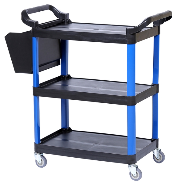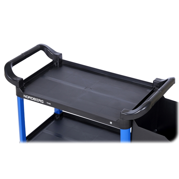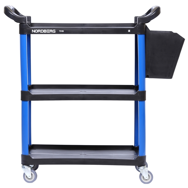Тележка с тремя открытыми полками Nordberg предназначена для размещения и транспортировки по территории цеха к месту проведения работ инструментов, принадлежностей, деталей, расходных материалов и иных предметов. Сфера эксплуатации: автосервисы, детейлинг-мастерские, тюнинг-ателье, СТО и т.д.