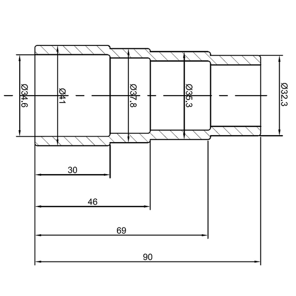 Полимерный 4-ступенчатый переходник AE&T служит для соединения шланга пылесоса и патрубка насадки, имеющих разные посадочные диаметры. Диаметры ступеней – 32, 35, 38, 41 мм.