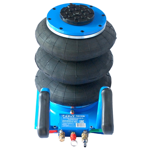 Пневматический домкрат AE&T грузоподъемностью 3 тонны предназначен для подъема и временного удержания в вывешенном состоянии легкового автомобиля, внедорожника, микроавтобуса или другого груза. Сфера применения: автосервисы, шиномонтажи, мастерские, автотранспортные предприятия и т.д.
