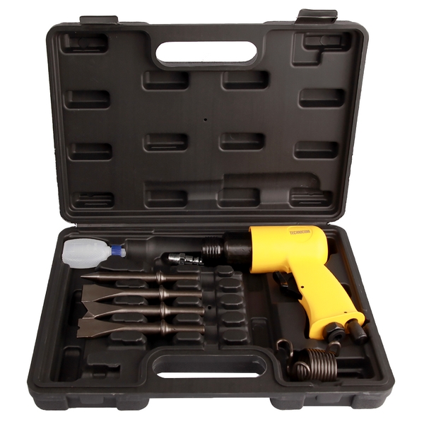 Пневматический молоток (пневмозубило) Technicom предназначен для быстрой и эффективной обработки изделий из металла, бетона, твердой пластмассы, дерева и других материалов – снятия ржавчины, срывания точечной сварки, срезания болтов и заклёпок, демонтажа бетонных конструкций и т.д. Применяется в мастерских, цехах кузовного ремонта, на строительных объектах, небольших производствах и т.д.