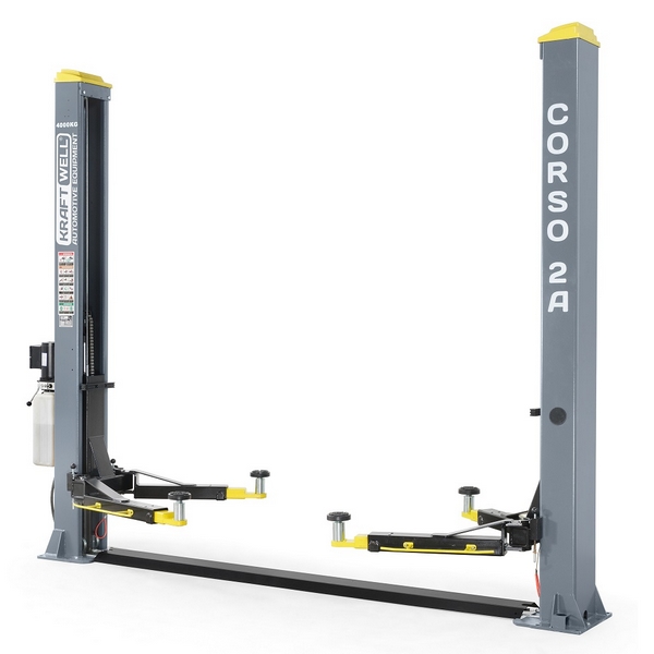 Двухстоечный подъемник с нижней синхронизацией стальным тросом KraftWell предназначен для подъема автотранспортных средств массой до 4000 кг при проведении сервисного обслуживания, диагностики, различных ремонтных работ и других операций.