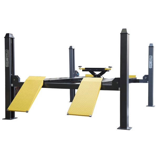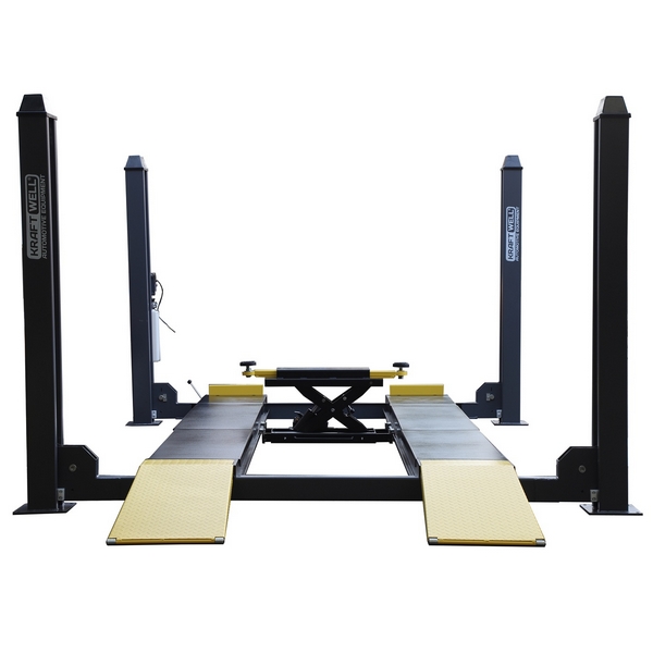Электрогидравлический четырехстоечный подъемник KraftWell грузоподъемностью 4000 кг предназначен для поднятия и удержания автомобилей при проведении проверки и регулировки углов установки колес совместно со стендами "сход-развал" по технологии 3D, а также некоторых сервисных, диагностических и других работ. Применяется в автосервисах, автомастерских, на СТО и т.д.