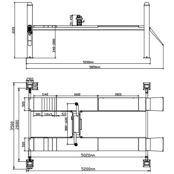 - платформы размером 5020х520 мм оснащены компенсирующими пластинами для автомобилей с разной колесной базой;