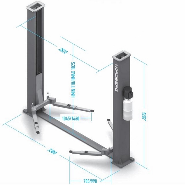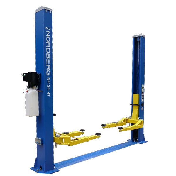Электрогидравлический двухстоечный подъемник Nordberg N4124-4T (380 В) с нижней тросовой синхронизацией обладает грузоподъемностью 4000 кг и применяется в автосервисах и СТО для подъема и удержания на высоте легковых автомобилей, внедорожников, развозных фургонов класса LCV при проведении ТО и различных ремонтных работ.