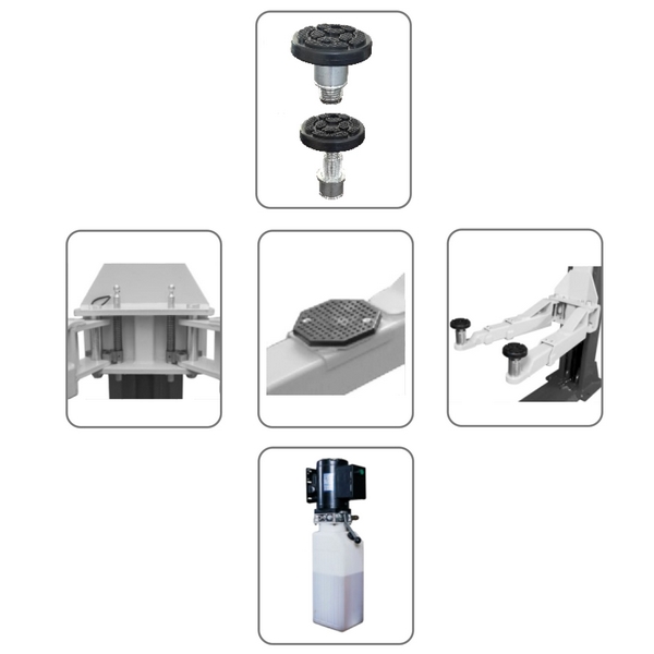 - входящие в комплектацию регулируемые резьбовые подхваты, проставки высотой 70 мм, а также скользящие адаптеры на лапах обеспечивают широкий диапазон обслуживаемых автомобилей;