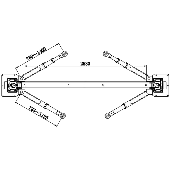 - ассиметричные двух- и трехсекционные лапы регулируются по длине в диапазонах 730-1460 / 725-1125 мм и механически блокируются от поворота;