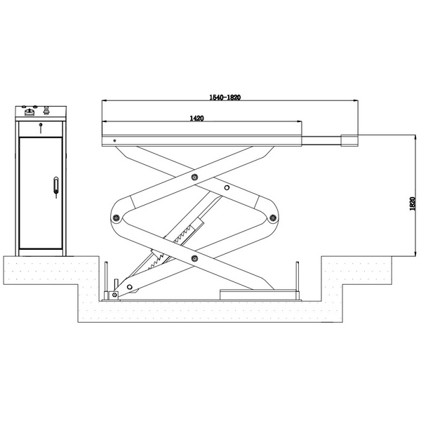 Платформы регулируется по длине, что делает возможным обслуживать автомобили с разным размером колесной базы. Конструкцией ножничного автоподъемника также предусмотрены: пневмосистема разблокировки стопорного механизма, выключатель ограничения высоты, функция аварийного опускания при отключении электрической энергии.