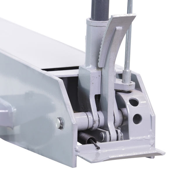 Профессиональный подкатной гидравлический домкрат KraftWell KRWFJ5 будет удобен для поднятия легковых автомобилей со средним и повышенным дорожным просветом (клиренсом) – высота подхвата составляет 160 мм. Удлиненный корпус позволяет производить работы глубоко под машиной. Спуск осуществляется вращением ручки посредством надежного карданного узла, имеется фиксатор наклона ручки. Домкрат оснащен педалью быстрого подъема, предохранительным клапаном, эргономичной ручкой. Устройство отличается возможностью самоцентровки при подъеме груза, усиленными колесами. Домкрат KraftWell KRWFJ5 комплектуется с резиновой насадкой.