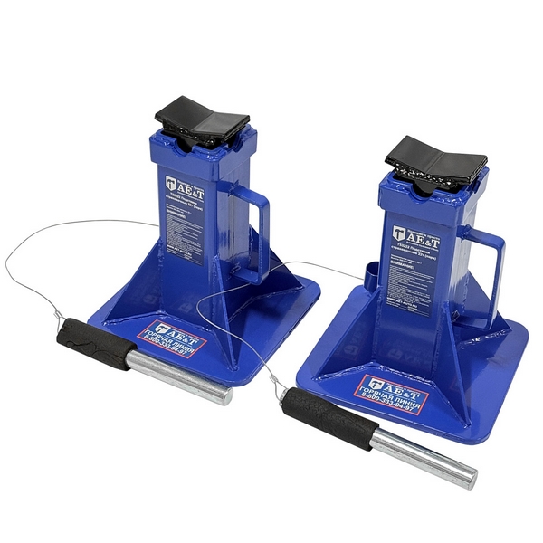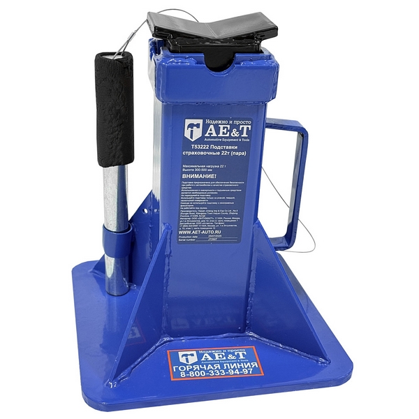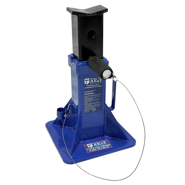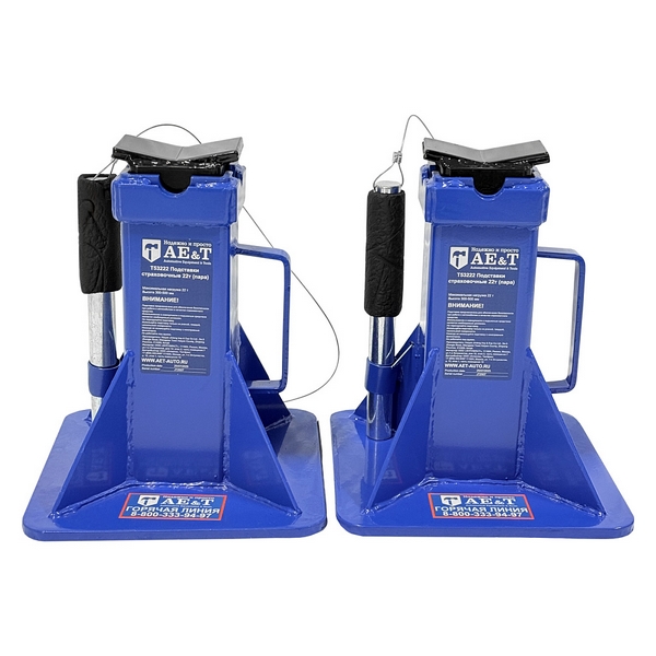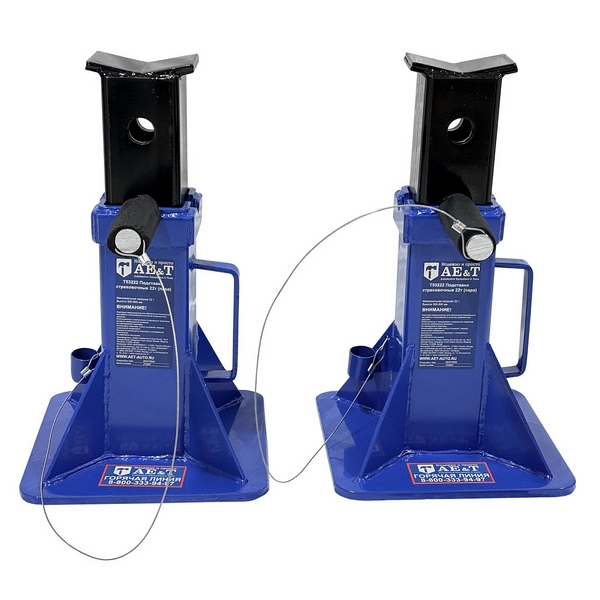 Страховочные подставки AE&T грузоподъемностью по 22 тонны каждая предназначены для удержания поддомкраченного заранее грузового автомобиля, автобуса, сельскохозяйственной, специальной и другой техники для проведения ремонта, шиномонтажа или техобслуживания. Сфера применения: автомастерские, автотранспортные предприятия, СТО.