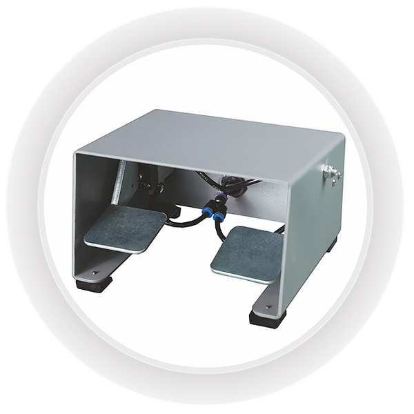 - педальный механизм двойного действия с пневматическим управлением обеспечивает быстрое возвращение штока поршня в исходное положение при сбросе давления предохранительного клапана, а также оставляет обе руки оператора свободными для быстрого и точного размещения объекта;
